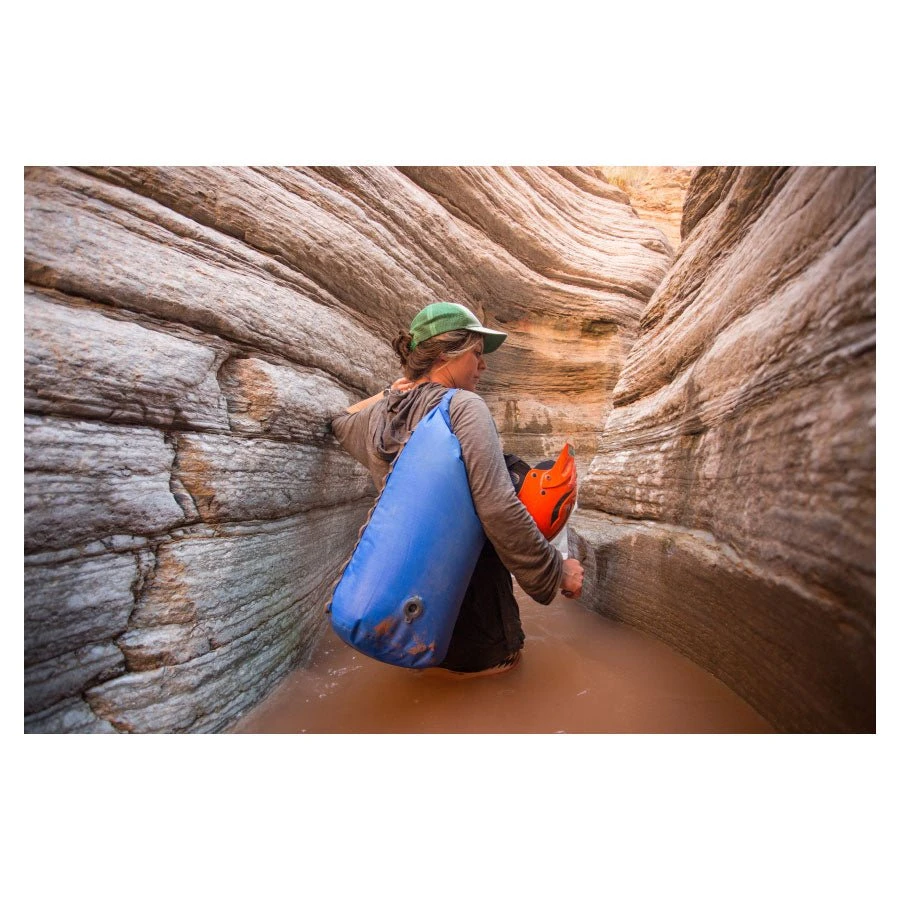 The oval shape keeps the bag stable when lying on its side and also stows easily in a kayak’s bow or stern compartment. The slim shape and numerous attachment points allow easy attachment to the exterior of a backpack.