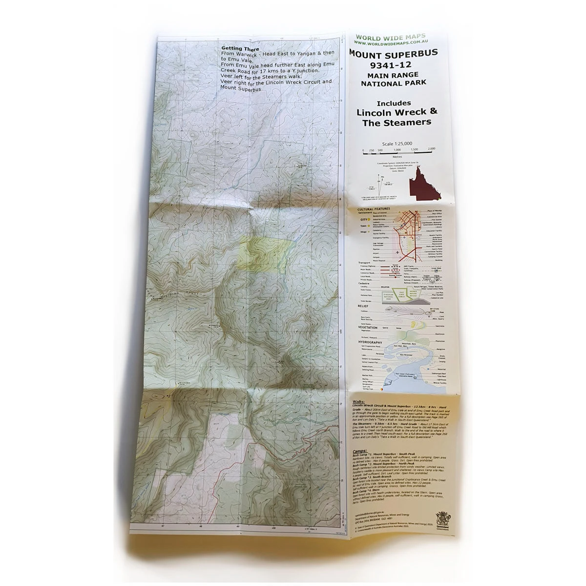 Mount Superbus, the Steamers, the Lincoln Wreck and north to Mount Huntley. This map is a full size A1 topographic map at 1:25,000 standard map number 9341-12. Includes information about some walks and camp sites and how to get there.